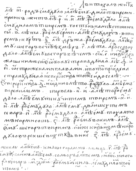 Irnik lived 150 years (ago). His clan is Dulo, and his year is Snake 9th (6th year 9th month Sept) Gostun, regent, 2 years. His clan is Ermi, and his year is Boar 9th (12th year 9th month Sept) Kur(ba)t reigned (for) 60 years. His clan is Dulo, and his year is Bull 3rd (2nd year 3rd or 5th mo? March or May?) Bezmer 3 years. And his clan is Dulo, and his year is Bull 3rd (2nd year 3rd or 5th mo? March or May?) These five princes reigned on the other side of the Danube (for) 515 years with shaven heads And after that Prince Isperih came to (this) side of the Danube. And so it is till now Prince Esperih, 60 and 1 years. His clan is Dulo, and his year is Dragon (or Bars?) 1st (3rd or 5th year 1st month Jan) Tervel, 21 years. His clan is Dulo, and his year is Horse (or Ram?) 7th (7th or 8th year 7th month July) (? ... and his year is ...) 9th (9th month Sept) (? ...), 28 years. His clan is Dulo, and his year is Hare 8th? (4th year 8th month Aug) Sevar, 15 years. His clan is Dulo, and his year is Sheep 6th (8th year 6th month June) Kormisos, 17 years. His clan is Vokil, and his year is Bull 9th (2nd year 9th month Sept) This prince changed clan Dulo, to (clan called) Vihtun Vineh, 7 years. His clan is Ukil, and he has (his year) Bull 1st (2nd year 1st month Jan) Telets, 3 years. His clan is Ugain, and his year is Mouse (or Dragon?) 6th (3rd year 6th month June) He too was instead of another (rightful ruler) Umor, 40 days. His clan is Ukil, and his year is Snake 4th (6th year 4th month Apr) |