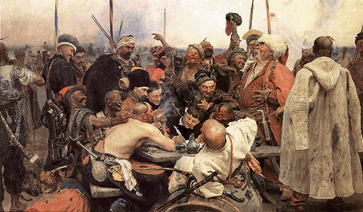 The haircut of the Huns and Bulgars was a celebrated symbol of a caste, carried through the millennia, known from China to Europe, and abundantly documented. The men of the ruling caste had their heads shaved, with a single braid of hair left. The laymen had their hair braided. We can see this “shaven heads” hairstyle in the 1878 picture of I.E.Repin “Letter of Zaporojie Kazaks to Turkish Sultan”. The Scythian pointed hat and haircut survived well into the 20eth century. To see the model of the Türkic royal haircut, click on the thumbnail (112K). |