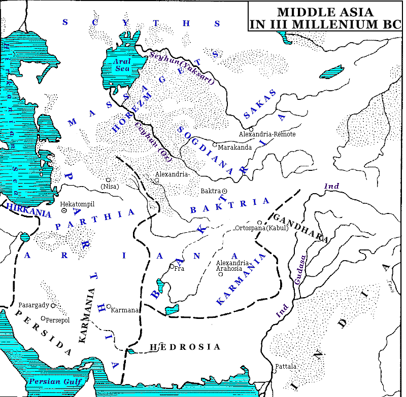 Второе замечание относится к этимологии этнонима хорезм, который в древности имел варианты хваризм, хорасм, хорамни. Если разложить этот этноним на смысловые части, исходя из тюркской модели этнонимов, то в вариантах хваризм, хорасм, хорезм мы увидим два корня хуар и ас и аффикс принадлежности 1 л., ед.ч. -м (-ым). Хуар - это по-другому - суар, которое состоит из двух корней су (ѕу>ху) ‘вода’ и ар - самый древний тюркский этноним, означающий ‘люди, мужчины’: хуар в целом - это ‘речные люди’. Наличие этнонима суар в составе этнонима хуарасм указывает на то, что хуарасы являются в какой-то степени потомками субаров (суаров) Передней Азии. Кроме того, этноним суар (хуар) активно применялся на Кавказе, в Урало-Поволжье, как видно, и в Средней Азии. Вторая часть этнонима хуарасм - это ас, он также самый древний тюркский этноним. Хуарас значит асы, но из племени суаров. Хуарасы создали свое государство и его, и страну назвали не просто Хуарас, а с любовью Хуарасм ‘мой Хуарас’. С течением времени название страны Хуарасм начало применяться и в значении этнонима хуарасм > хорезм. О том, что первая часть этнонима хуарас состоит из тюркского этнонима суар (хуар), говорит вариант хорамни, в котором нет этнонима ас, но имеется аффикс принадлежности -м (ни - по-видимому, позднее образование под влиянием иранского). В наличии одного корня (суар/ѕуар) в двух этнонимах шумер (сумер/сумар/субар) и хорезм (ѕуар-ас-м) мы видим заметные следы этнической родственности шумеров и хорезмийцев. Кроме того, наблюдаем мы это и в том, что у шумеров самоназвание было кангар, а хорезмийцев другие народы называли кангха или кангюй [Толстов С.П., 1948, 341]. В основе всех этих трех этнонимов лежит один корневой первичный этноним канг/кає ‘прародитель’. Рядом с суарами и асами (хуарасами) в долине Памира и Хиндукуша жили болгары, этноним которых (как и этноним суар) обозначает ‘речные люди’. Болгары и суары жили рядом и в Поволжье. Болгарские ученые высказывают мнение, что болгары являются выходцами из среднеазиатского тюркского ареала. Болгары затем принимали участие в создании тюркоязычного ареала в Причерноморье на Дунае. Наукой установлено, что племена, носившие первичные (несложные) этнонимы, жили намного раньше тех, которые носили вторичные (сложные) этнонимы. Поэтому приходится признать, что и в Средней Азии намного раньше, чем хуарасы, жили ары, асы, суары. Еще раз обращаю внимание читателей на то, что еще в древности тюрки свою страну называли с уважением и любовью с прибавлением местоимения моя, которое в тюркском передается аффиксом принадлежности 1 л., ед.ч.: Хуарасм, Элем > Элам, Кырым, Биарм и т.д. С хорасмиями (хорезмийцами) были тесно связаны парды (парфяне). Будучи в подчиненном положении иранцам, в войске иранского царя Ксеркса парды, хорасмии, согды, гандарии и дадики составляли вместе один отряд, парды и хорасмии находились под начальством одного предводителя [Геродот, VII, 66]. Здесь прежде всего надо отметить, что парды (парфяне) первоначально были тюрками и влились в состав тюрков Средней Азии. Если бы они были ираноязычными, то под влиянием тюрков-кочевников не могли бы принять тюркский язык, наоборот, обязательно должны были ассимилировать «пришлых» тюрков-«кочевников», передать им индоиранский язык. Этноним парды этимологизируется также по тюркской модели. Парды состо