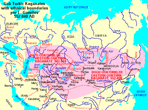 Kök Türks AD 552 with ethnical boundaries per Gumilev |