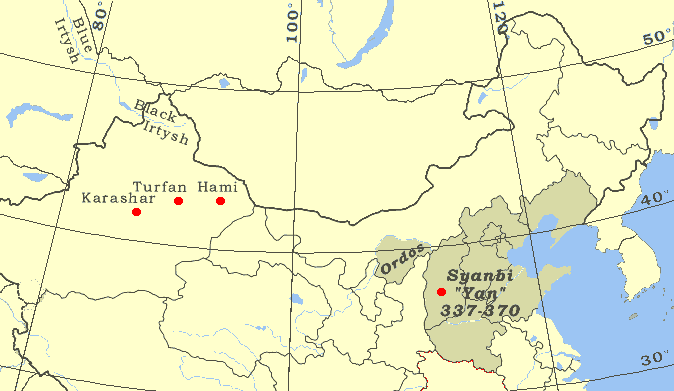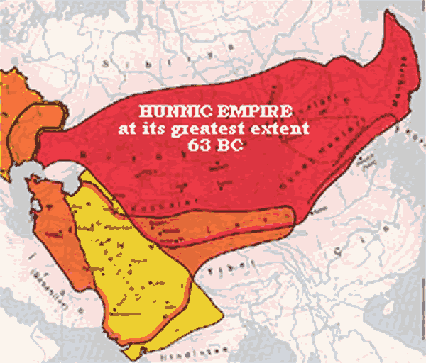 Huns occupied Central Mongolia and steppes of E. Baikal, defeated Tuguses (Ch. 东胡 Donghu/Tung-hu),
